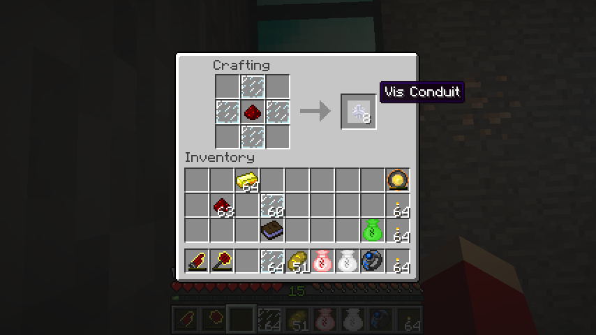ガラス板*4、レッドストーンで導管(Vis Conduit)*8。