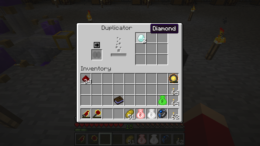 また、ピストンのような複雑なものや、他のMODで追加されたアイテムは複製できません。