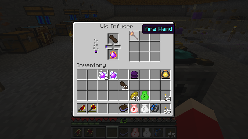 エルドリッチの木材に炎の魔力クリスタルで魔力を与えると、炎の杖(Fire Wand)になります。