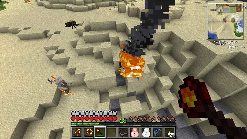 弓のように右クリックで狙いをつけ、離すと炎の弾を発射します。