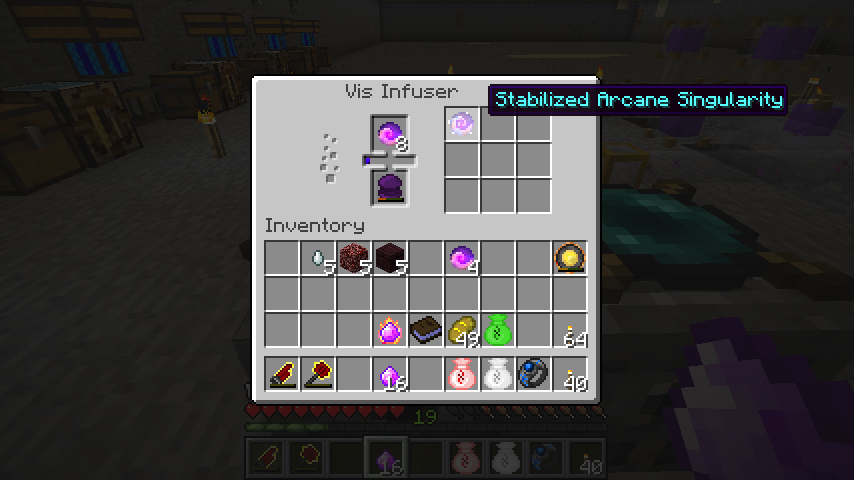 不安定な魔法特異点にさらに注入鋳型で魔力を与えると、安定した魔法特異点(Stabilized Arcane Singularity)になります。