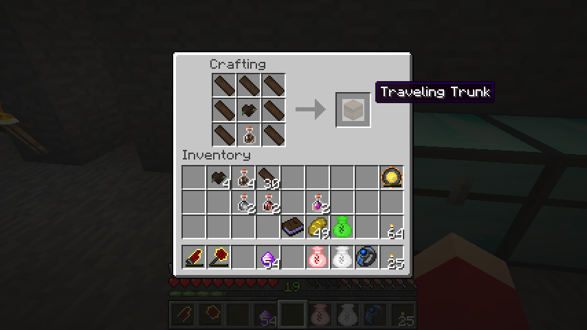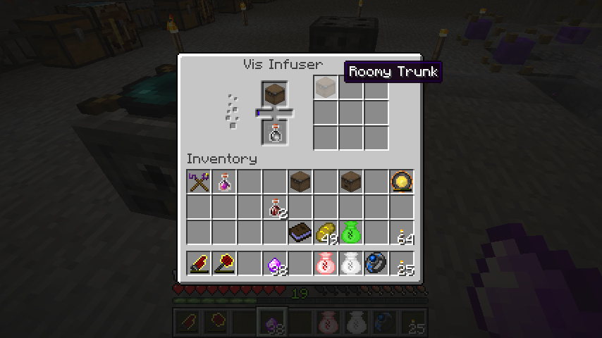 旅行カバンにDistilled Emptinessで魔力を与えるとゆったりとしたカバン(Roomy Trunk)。