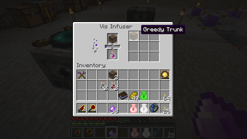 旅行カバンにDistilled Hungerで魔力を与えると欲張りなカバン(Greedy Trunk)。