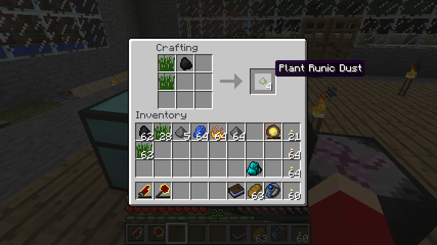 石炭、背の高い草*2で植物性ルーンダスト(Plant Runic Dust)*4。