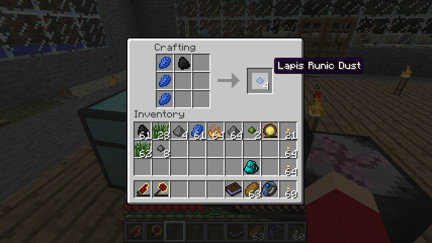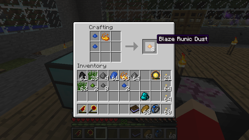 ラピスルーンダスト*2、ブレイズパウダーでブレイズルーンダスト(Blaze Runic Dust)*8。