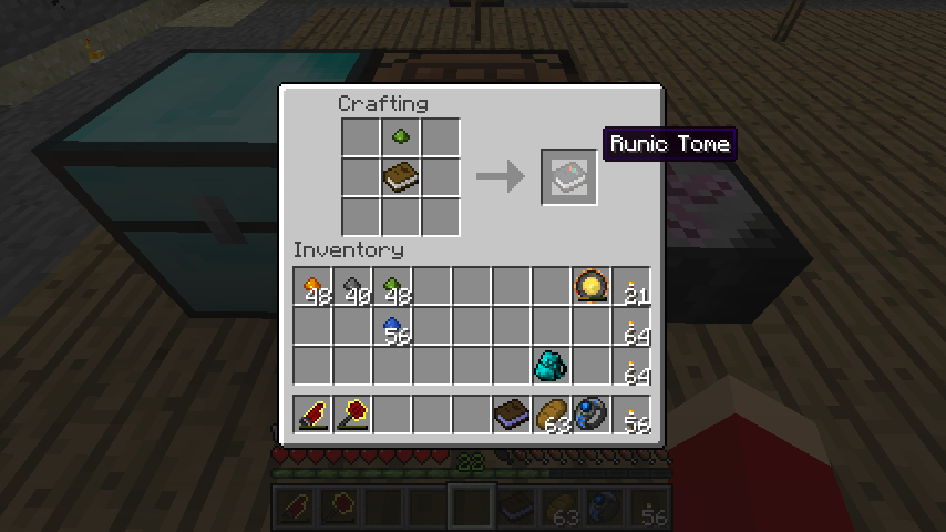 そしてもうひとつ大切な要素として、本と植物性ルーンダストでルーンの本(Rune Tome)を作ります。