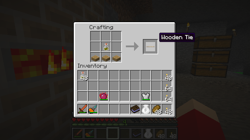 木の半ブロック*3+クレオソート油で木の横木(Wooden Tie)、木の横木*4で木の枕木(Wooden Railhead)。