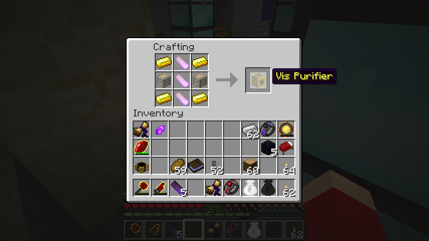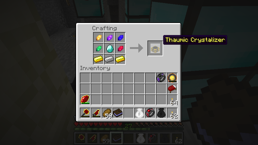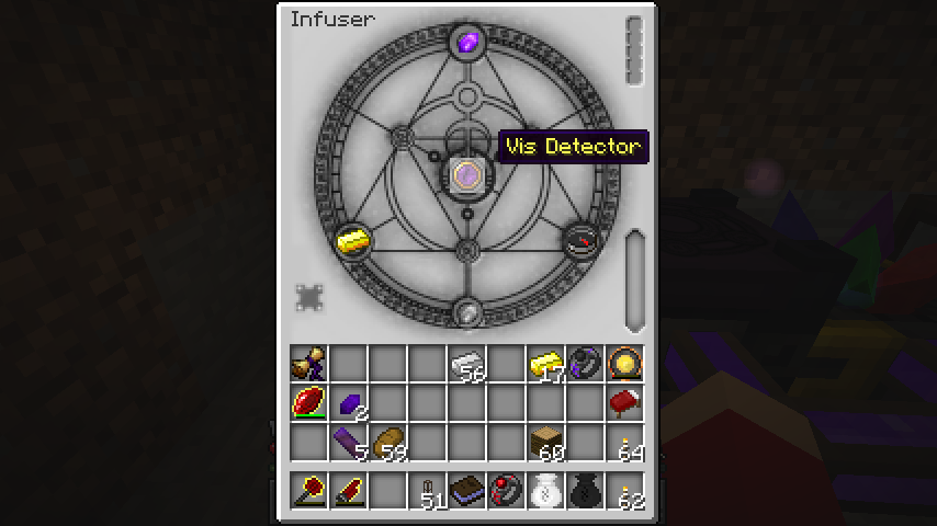 通常の魔力クリスタル、コンパス、金インゴットで魔力検知器(Vis Detector)。