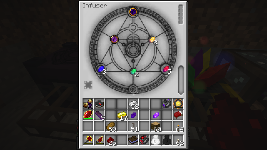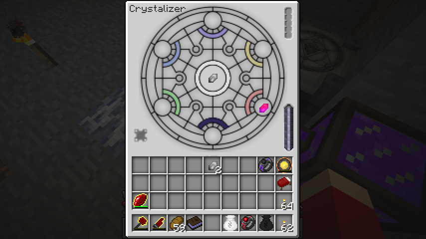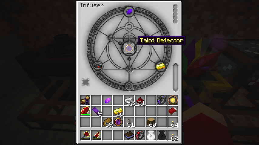 汚染された魔力クリスタル、コンパス、金インゴットで汚染検知器(Taint Detector)。