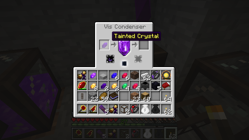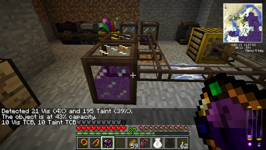 また手に持って右クリックすると、そのブロックが貯めているVisとTaintの量を調べてくれます。