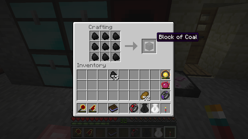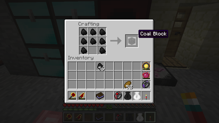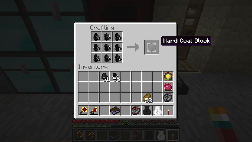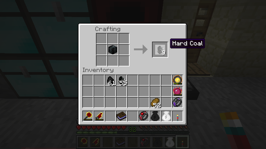 石炭ブロックは飾り石として設置でき、また精錬すると無煙炭(Hard Coal)になります。
