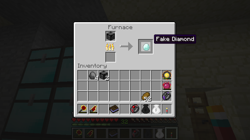 最後にブラックダイヤモンドブロックを精錬すると偽ダイヤモンド(Fake Diamond)が完成します。