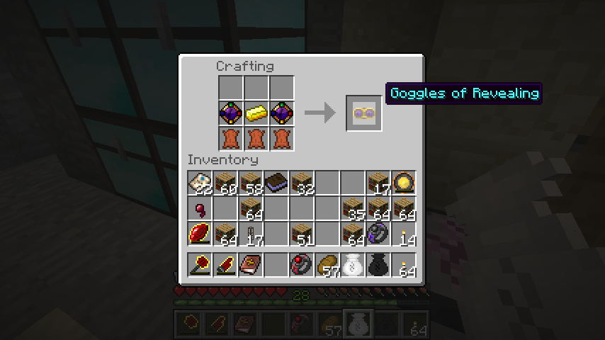 ソーモメータ*2、金インゴット、皮*3で洞察の眼鏡(Goggles of Revealing)。