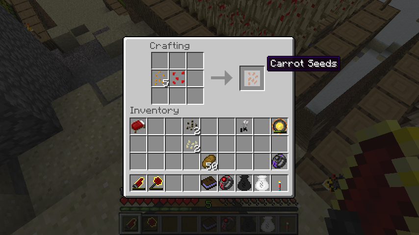 コーンの種子+薔薇の種子で人参の種子(Carrot Seeds)。