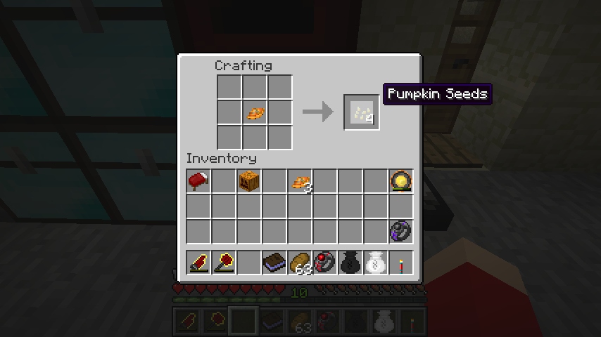 また、かぼちゃの種子+コーンの種子で豆(Soy Beans)、かぼちゃの種子+ハイブリッド種子でオレンジの種子(Orange Seeds)が作れます。