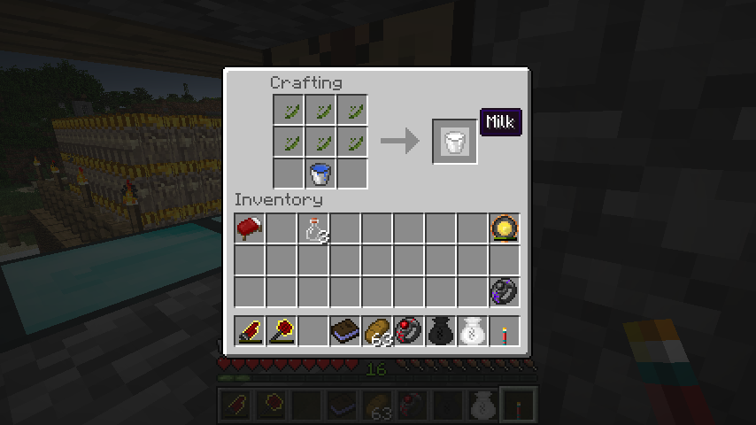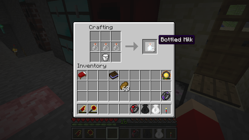 牛乳バケツ、ビン*3で牛乳瓶(Bottled Milk)。