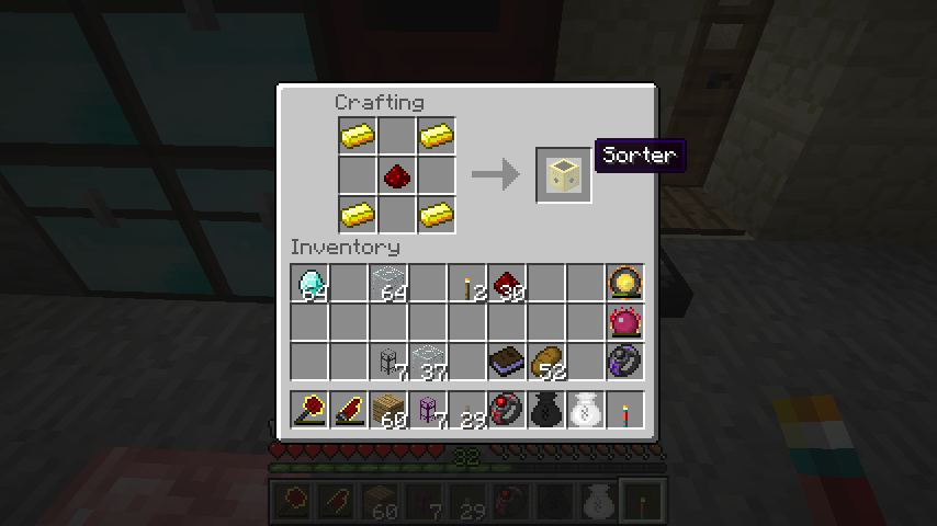 次にソーター(Sorter)は金インゴット*4、レッドストーン。