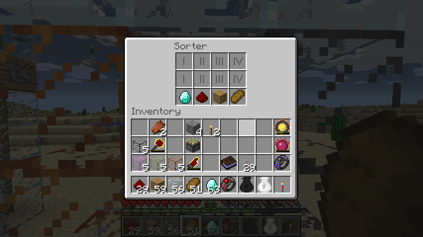 今回はIにダイヤモンド、IIにレッドストーン、IIIに木材、IVにパンを入れています。