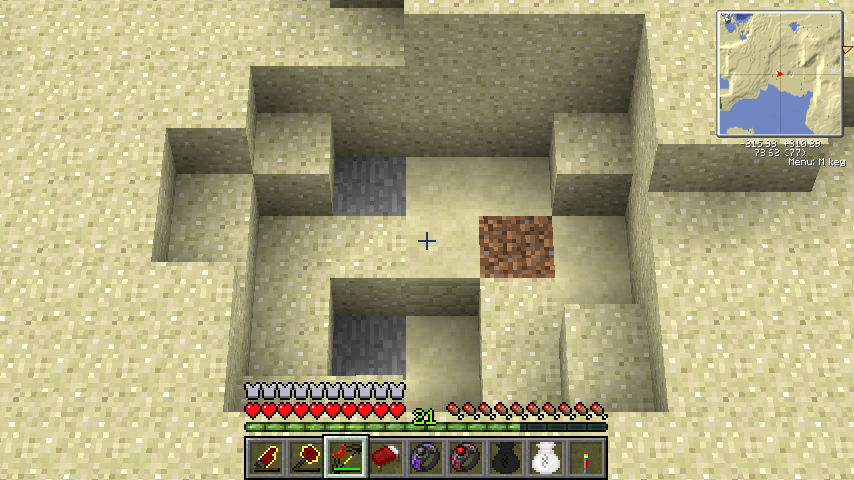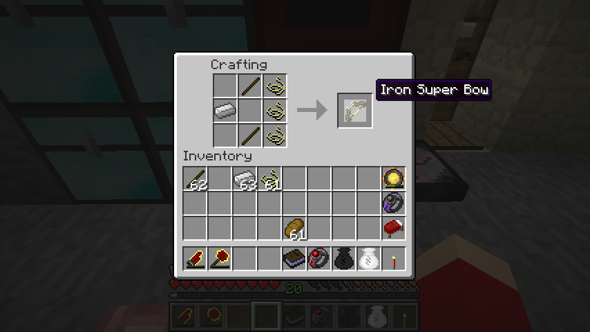 鉄インゴット、鍛えた棒、羽根で鉄の矢(Iron Arrow)*8。