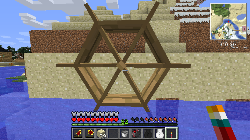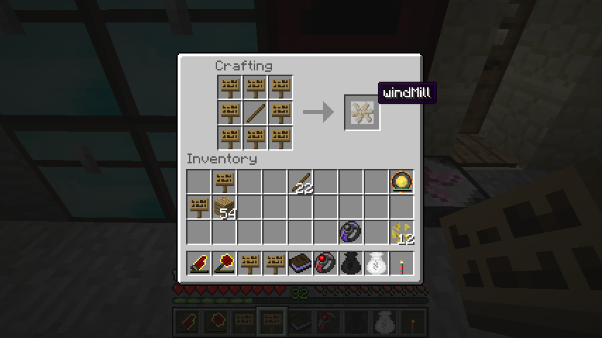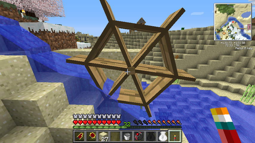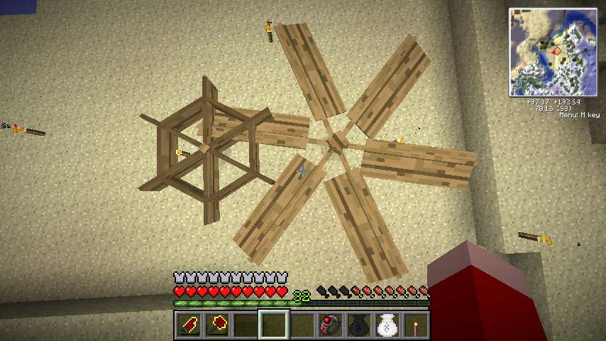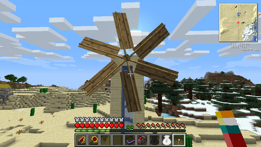 ということで単体であれば景観要員として便利な風車水車、BuildCraftと組み合わせればエンジン動力として扱えるようになるハリボテ回転エンジンでした。
