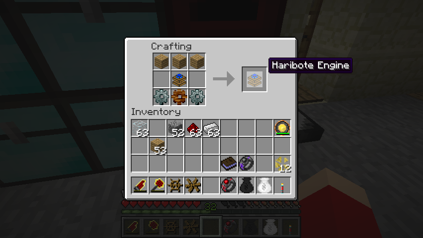 回転エンジン(Haribote Engine)のレシピは木エンジン、木材*3、石の歯車*2、木の歯車。