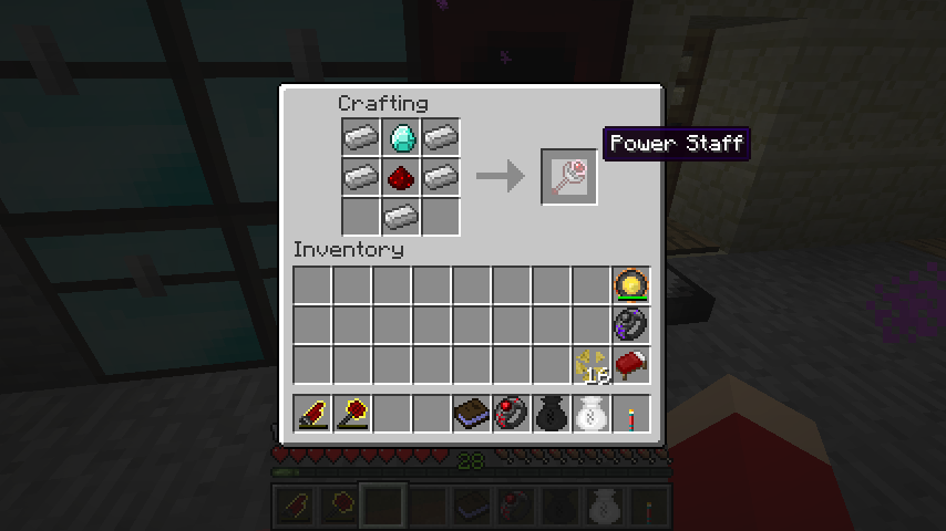 パワースタッフ(Power Staff)のレシピはダイヤモンド、レッドストーン、鉄インゴット*5。