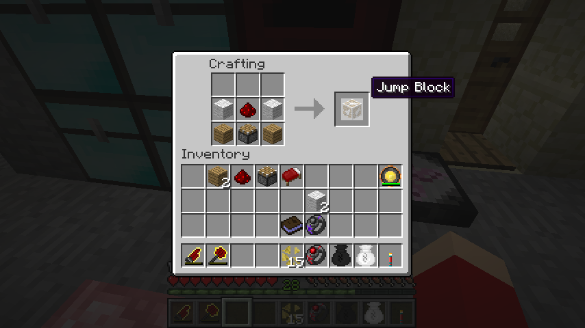 ピストン、レッドストーン、木材*2、羊毛*2でジャンプブロック。