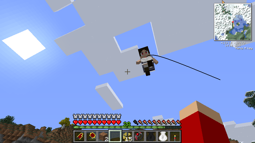 初速の最高速は50で、ちょっとした丘から飛ぶと100ブロック以上を一瞬で移動可能です。