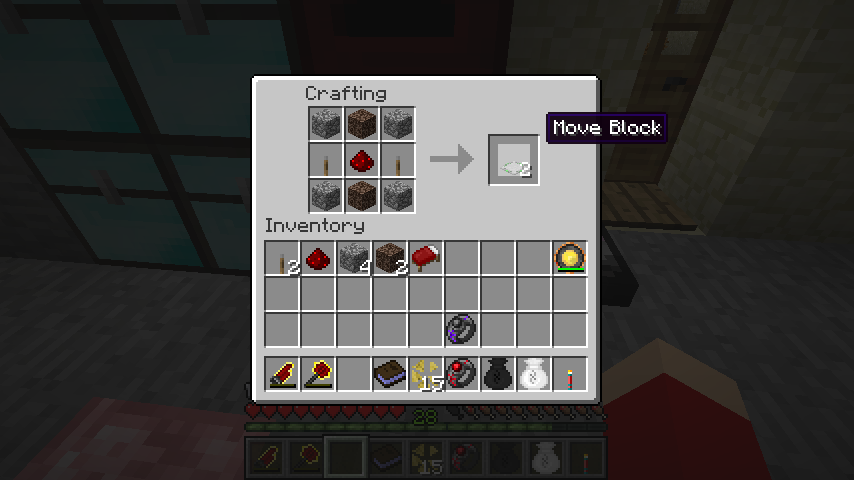 レッドストーン、レバー*2、ソウルサンド*2、丸石*4でムーブブロック(Move Block)*2。