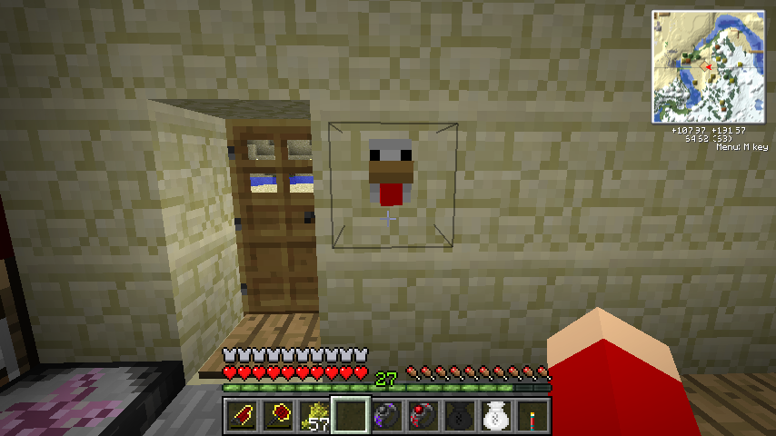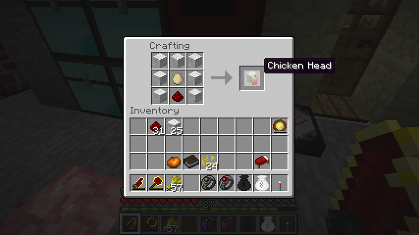 白羊毛*7、レッドストーン、卵で鶏ヘッド(Chicken Head)。