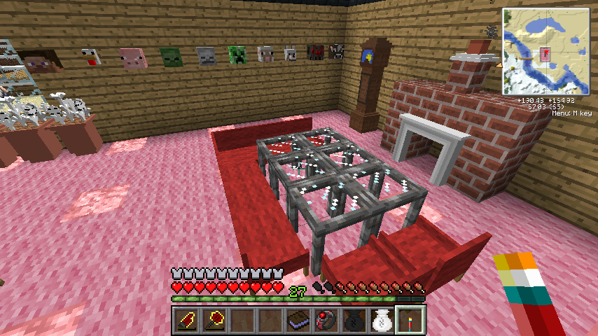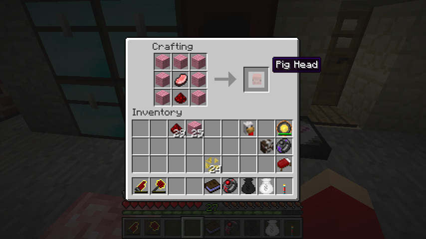 ピンク羊毛*7、レッドストーン、生豚肉で豚の頭(Pig Head)。