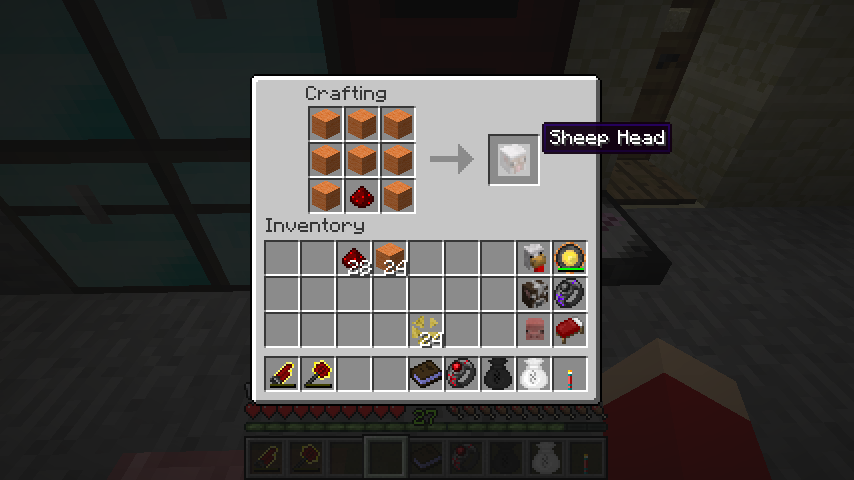 オレンジ羊毛*8、レッドストーンで羊の頭(Sheep Head)。