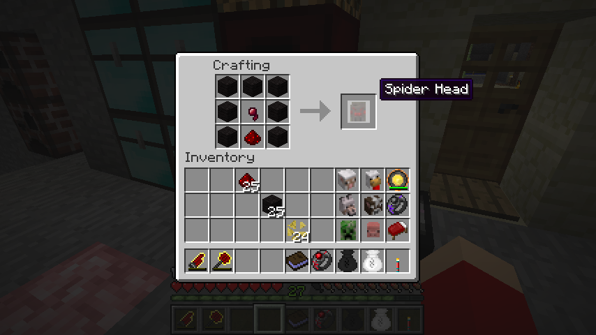 黒羊毛*7、レッドストーン、蜘蛛の目で蜘蛛の頭(Spider Head)。
