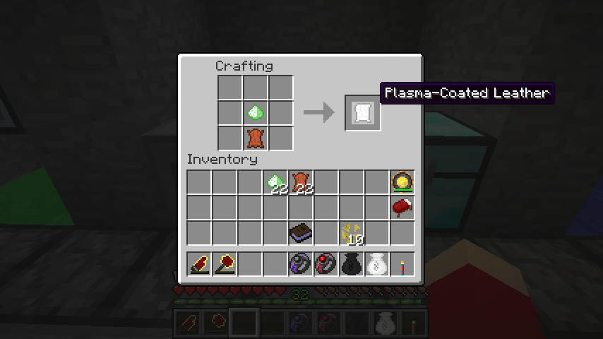 プラズマ被覆皮革は、通常の皮と同じレシピで耐食性装備(Hazmet)を作れます。