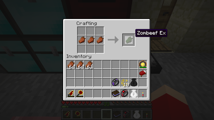 スーパーゾンビ肉*2、TNTで障害ゾンビ肉(Zombeef Ex Harmful)。