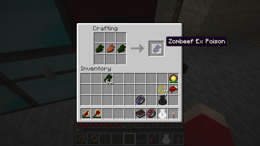 スーパーゾンビ肉*2、ゾンビ肉で猛毒ゾンビ肉(Zombeef Ex Poison)。