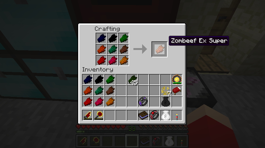 スーパーゾンビ肉*2、砂糖で弱体ゾンビ肉(Zombeef Ex Weak)。