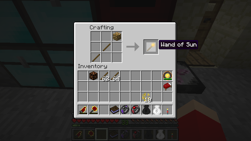 木の棒*2、グロウストーンで太陽の杖(Wand of Sun)。