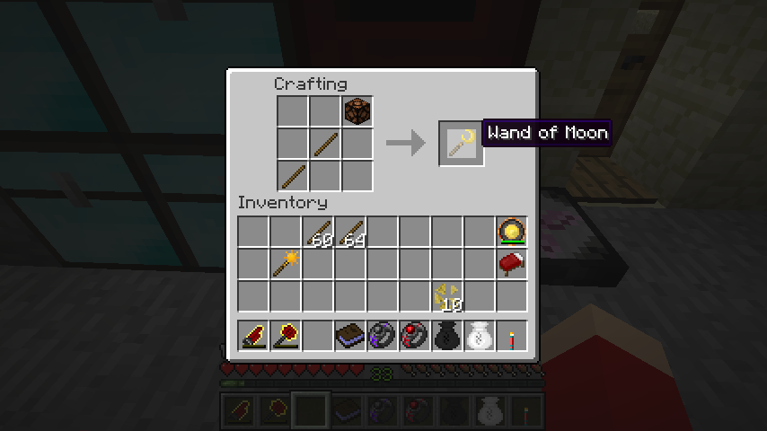 木の棒*2、レッドストーンランプで月の杖(Wand of Moon)。