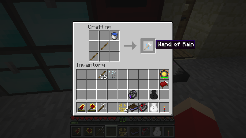 木の棒*2、水バケツで雨の杖(Wand of Rain)。