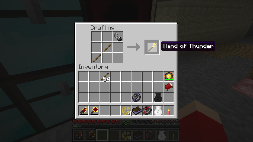 木の棒*2、火打ち石で雷の杖(Wand of Thunder)。