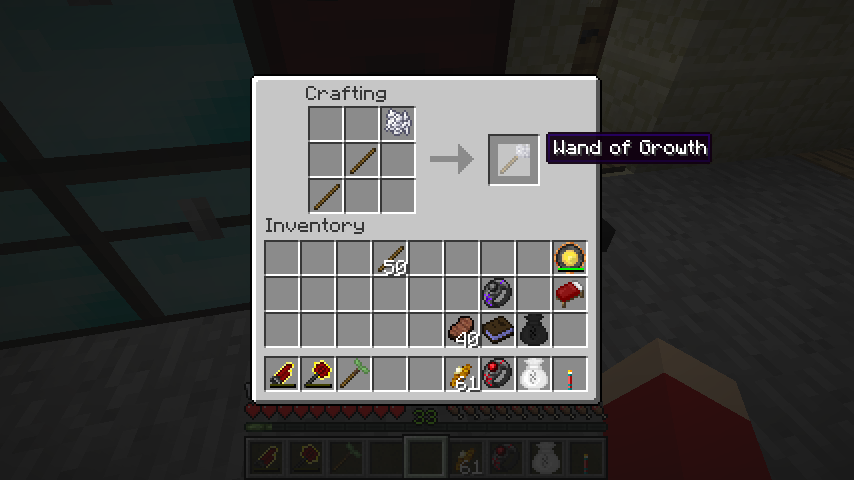木の棒*2、骨粉で速育の杖(Wand of Growth)。