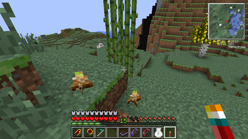 筍は鍬で回収が可能で、また適当に植えて隣に松明を置いておくとそのうち竹になるみたいです。