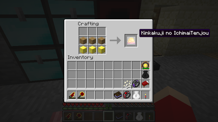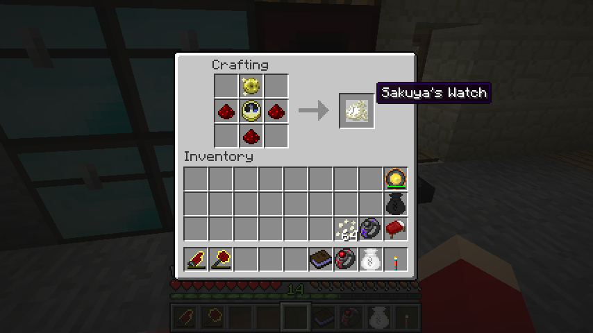 時計、レッドストーン*3、黄真珠で咲夜の時計(Sakuya's Watch)。