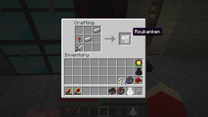 鉄の剣、鉄インゴット*2、赤い花で楼観剣(Roukanken)。