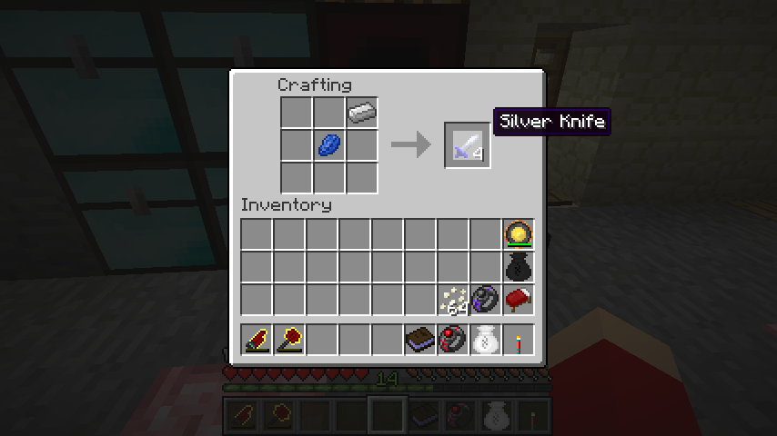 鉄インゴット、ラピスラズリで銀のナイフ(Silver Knife)*4。
