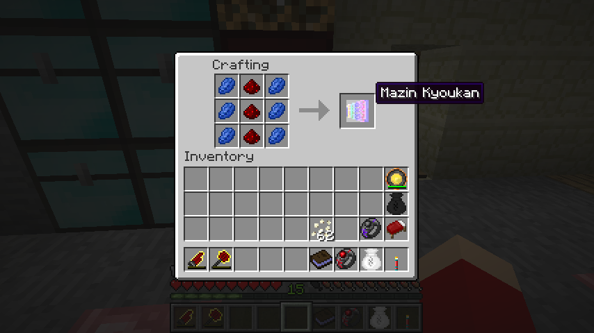 最後に魔人経巻(Mazin Kyoukan)はレッドストーン*3、ラピスラズリ*6。