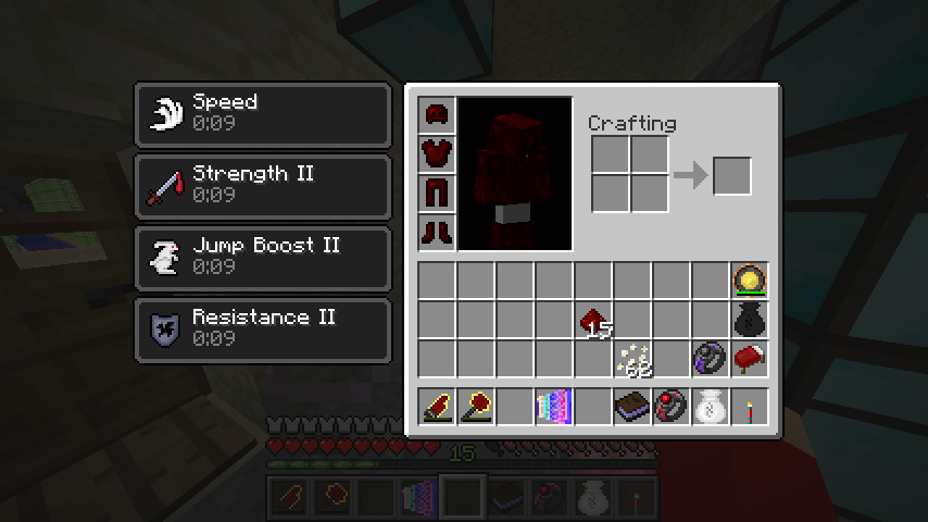 使用ごとにレッドストーンをひとつ消費し、効果時間は15秒です。