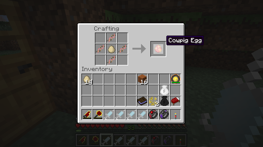 落とすアイテムは基本的にそれぞれのモブが合体したものですが、Cowpigだけは先割れスプーン(Spork)を落とします。