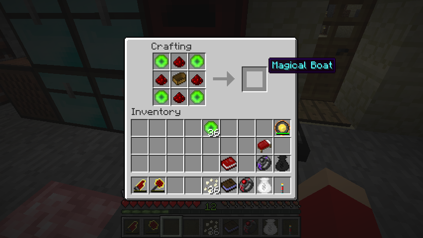 ボート、レッドストーン*4、経験値オーブ*4でマジカルボート(Magical Boat)